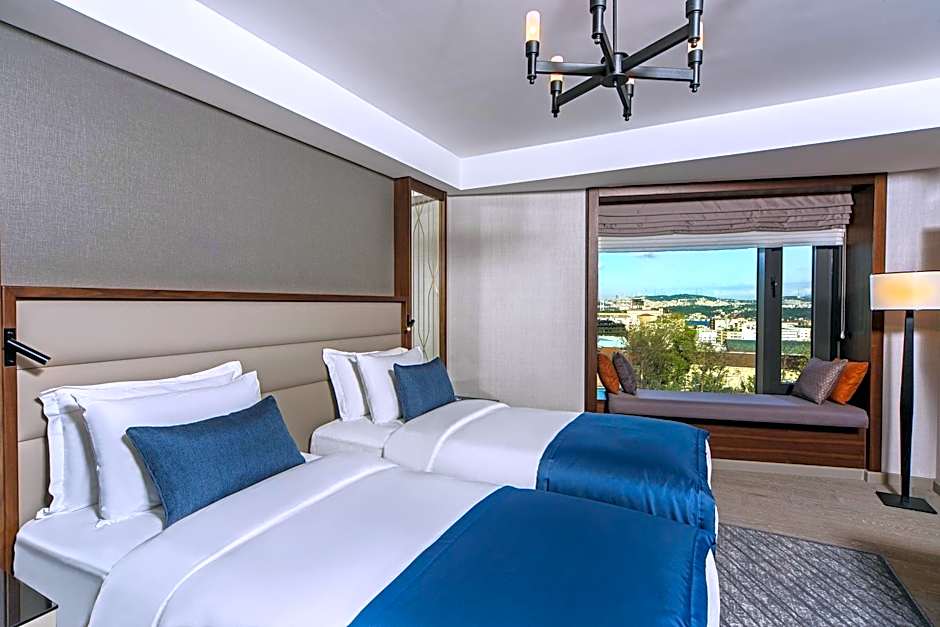 Providing free toiletries and bathrobes, this double room includes private bathroom with a walk-in shower and hairdryer. The spacious air conditioned double room provides a flat -screen TV with satellite channels, soundproof walls, a mini-bar a tea and coffee maker as well as city views. The unit offers 1 bed or 2 single bed. The spacious air conditioned Standard Double/Twin room offers a 40” flat -screen TV with satellite channels, soundproof walls. Private room phones, mini-bar, electric kettle provided in all rooms as well as city views. The unit offers 1 queen or 2 sng beds and marble paved private bathroom providing free toiletries, hair dryer, rain shower and bathrobes.